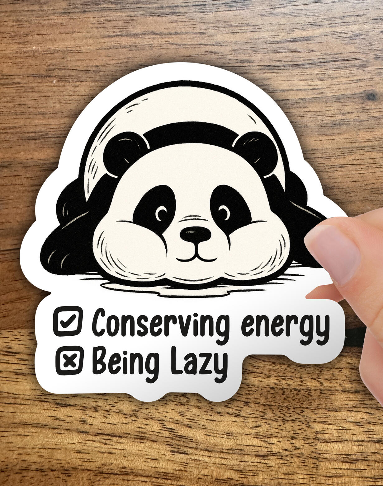 We've designed a pudgy, fun-loving, energy-conserving panda sticker just for you.We hope this sticker makes you laugh and reminds you of your favorite bamboo-loving bear. Stickers ship in 1–2 weeks via USPS.